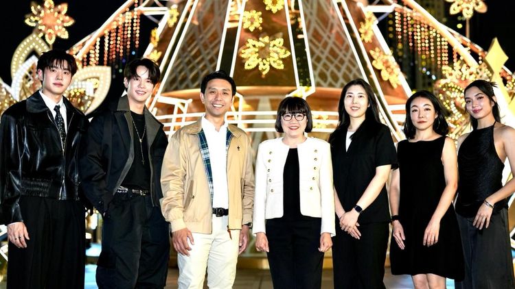 ปีเตอร์–กอล์ฟ–อิง นักแสดงจากค่าย Mojo Muse Management ร่วมงาน ICONSIAM Bangkok Illumination 2025